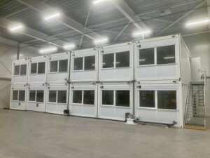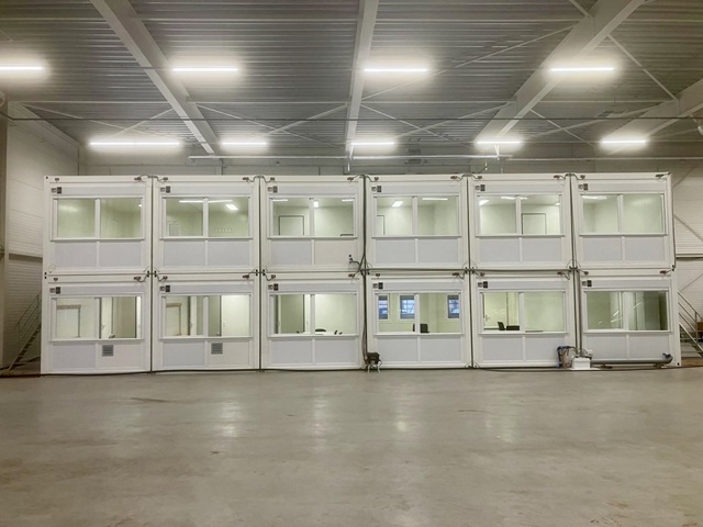 Met een vlakke ondergrond en een dak boven ons hoofd is met deze oplossing binnen een mum van tijd ruim 200m² kantoorruimte gerealiseerd.
